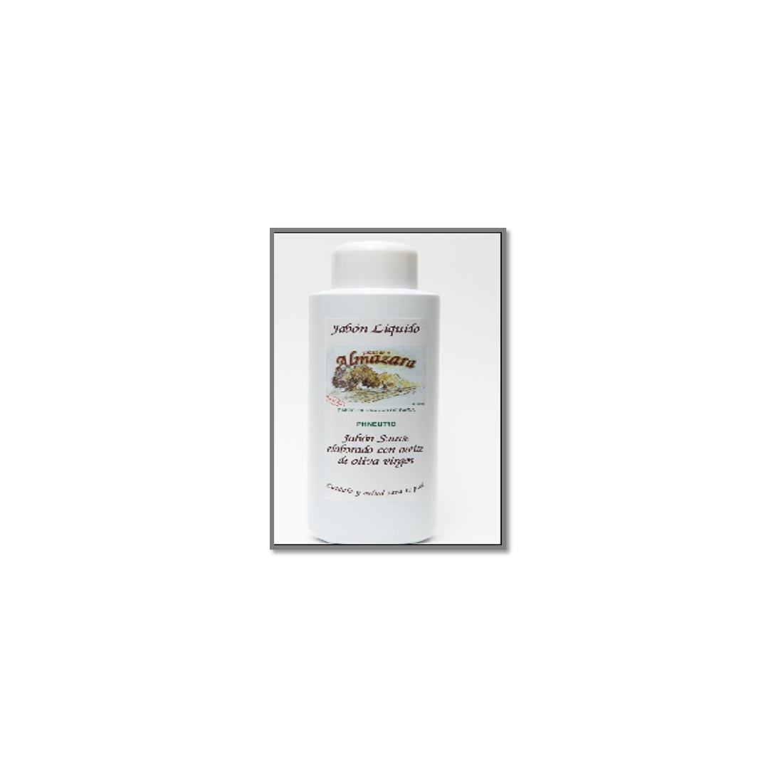 El jabón líquido Jardín de la Almazara elaborado a base de aceite de oliva virgen extra "canoliva", contiene de forma natural las vitaminas A y D, cuyo uso continuado previene la deshidratación de la piel, gracias a sus efectos emolientes y antioxidantes. Recomendada por Dermatólogos y Pediatras para todo tipo de pieles, especialmente para personas que sufren de Dermatitis Atópica, piel seca, o cualquier tipo de irritación de la piel. Sin parabenos ni colorantes.
